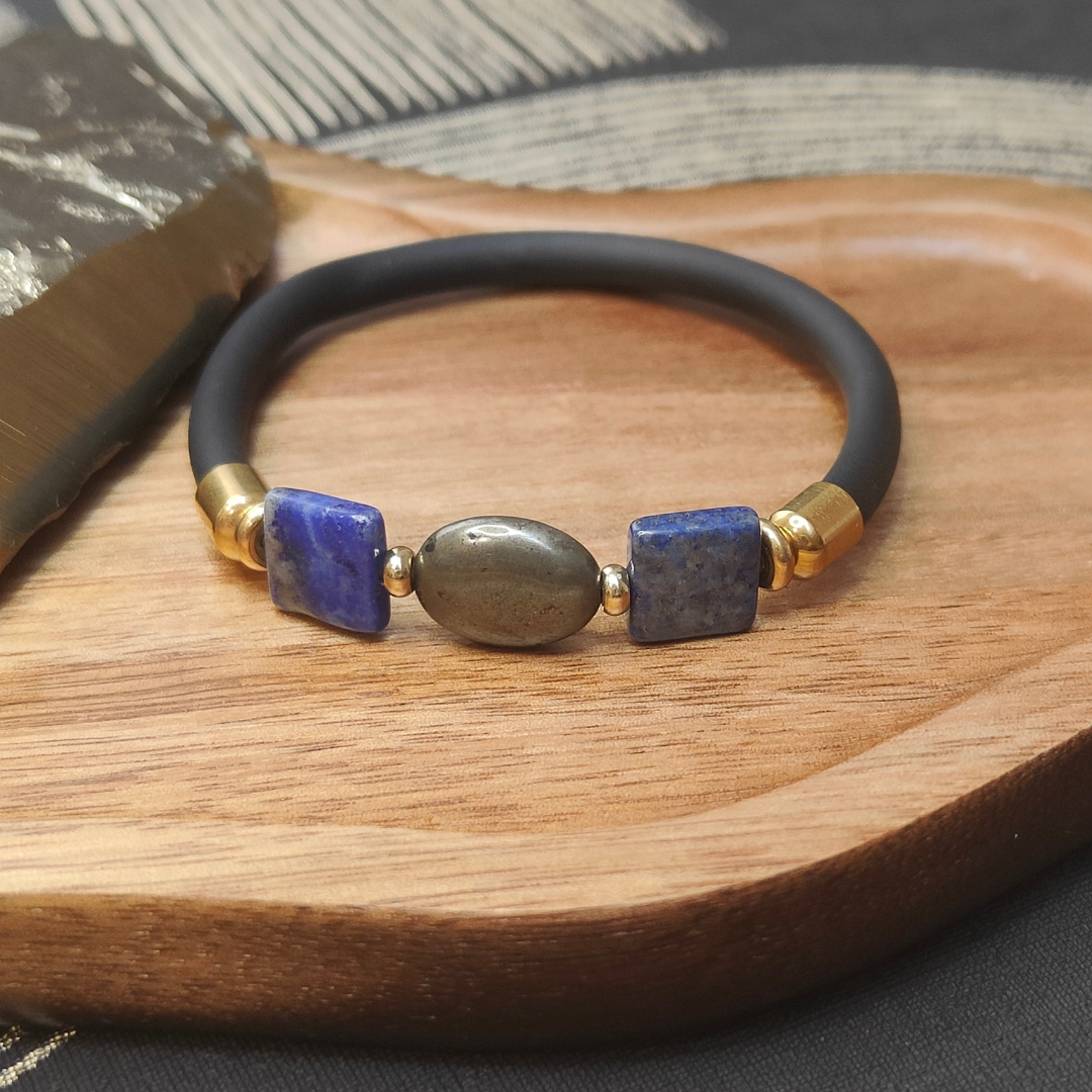 Pulsera Pirita y Lapislázuli piedras irregulares